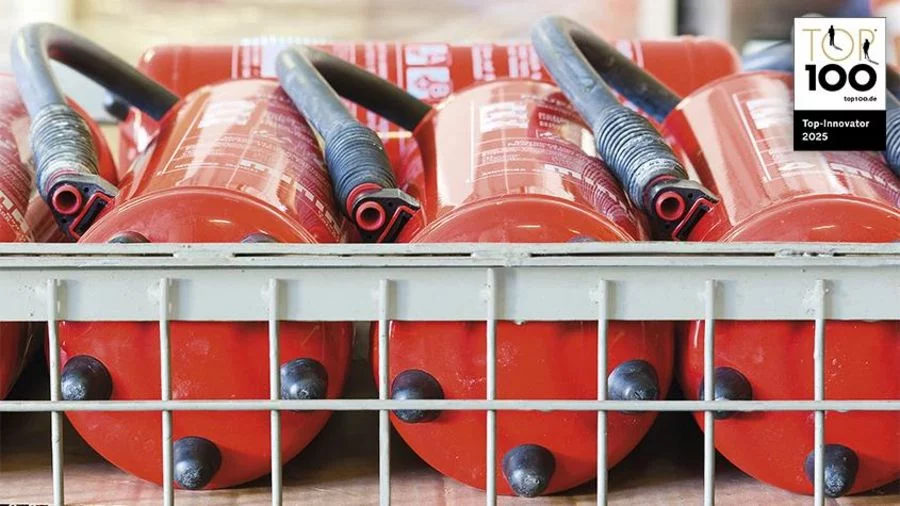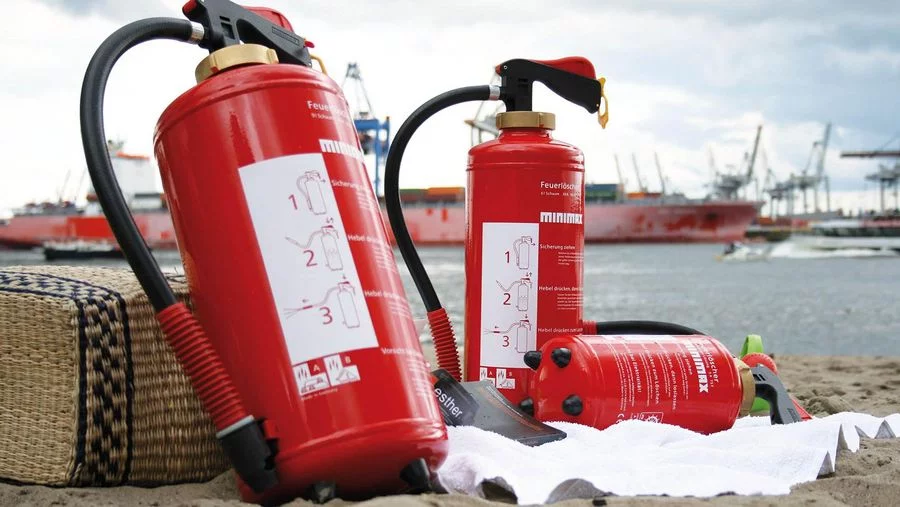 Um welche Art von Gerät es sich handelt, steht auf dem Feuerlöscher.