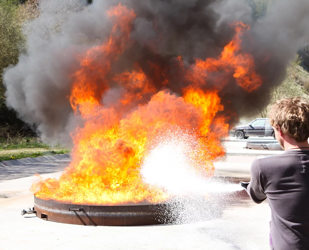 Ein Fettbrandfeuerlöscher mit dem Rating 75F ist also in der Lage, 75 Liter brennendes Öl zu löschen.